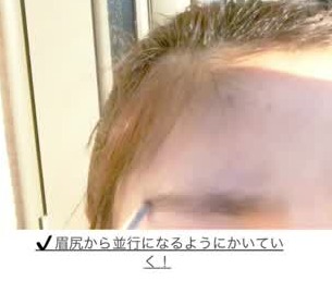 眉頭から眉尻にかけてつけましょう。このときに眉尻にかけて濃い色を多めに足すとくっきり眉になります。