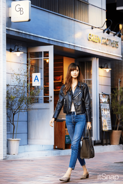 クールな印象のあるライダースは、彼ともお揃いにできちゃうのがうれしい♡レオパード柄のフラットシューズがアクセントになって、定番クールコーデもワンランク上のコーデに仕上がります。