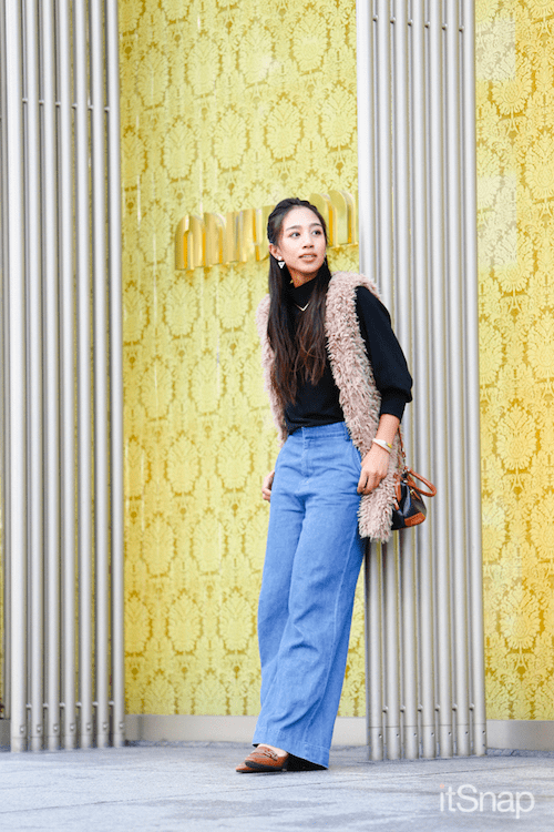 定番コーデになりやすいデニムコーデも、ファーベストを合わせれば一気におしゃれ上級者に◎写真でも映えそうなトレンドを抑えたコーデになりました。