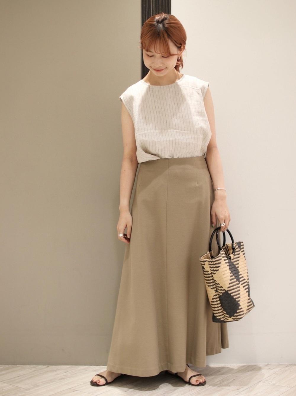 ロングスカートは面積が大きいぶん重たく見えがちですが、白のトップスを合わせることで軽やかな印象に♪上品な雰囲気の中にも抜け感があり、挑戦しやすいコーデです。