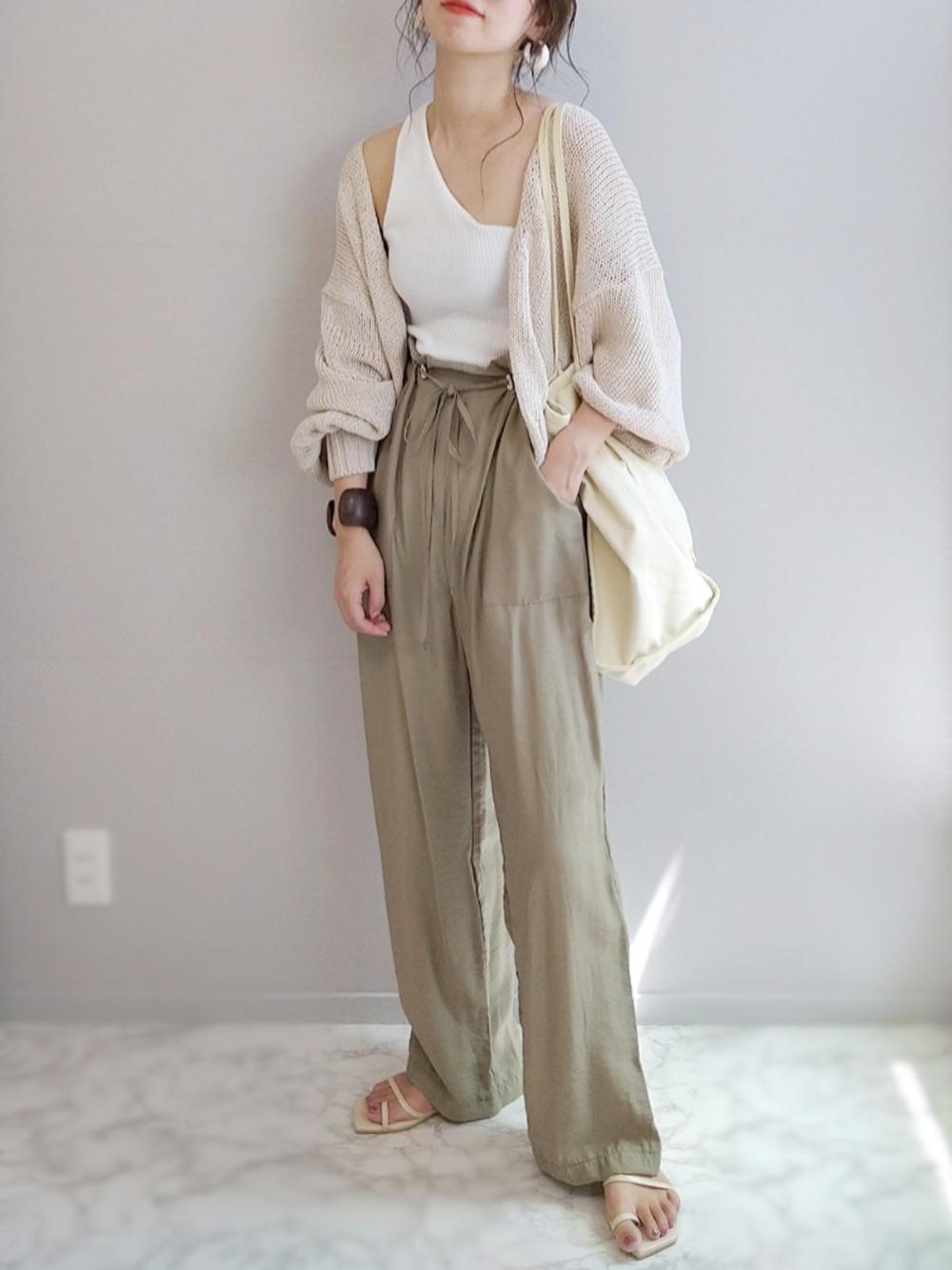 カジュアルになりがちなカーキもベージュのニットと合わせることで、優しい印象に仕上がります♡