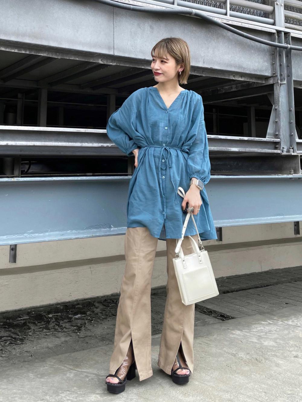 マリン風ルックを作るならブルーのシャツを合わせましょう♪ベージュとの相性抜群でとっても爽やかなコーデに♡