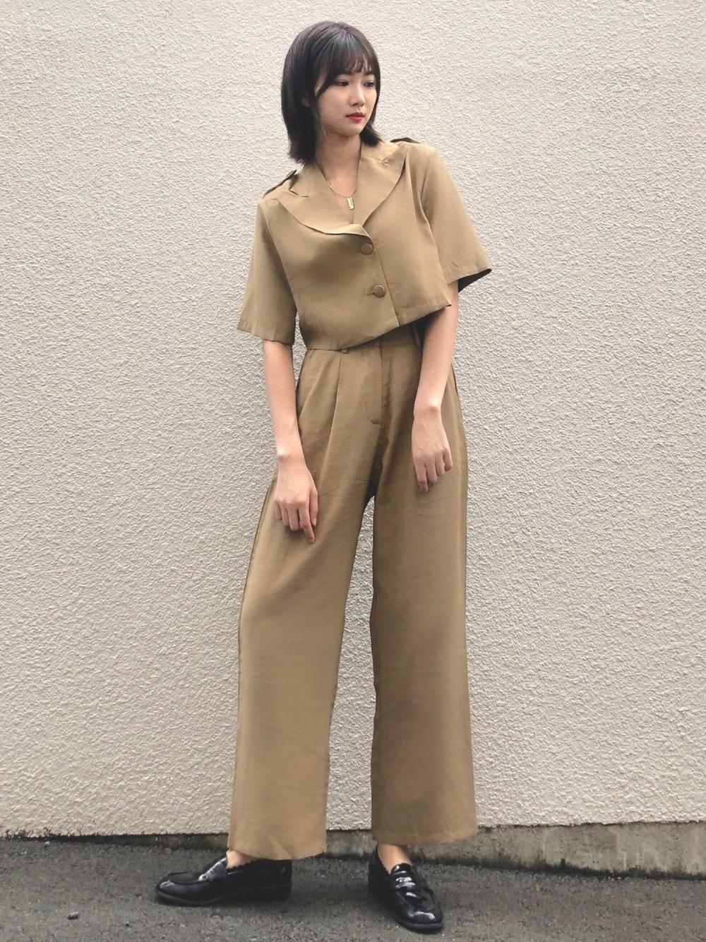 濃いめのベージュのセットアップで今っぽ韓国コーデに!セットアップはコーデを考える必要がないので、おしゃれ初心者さんにもってこいのアイテムです♪