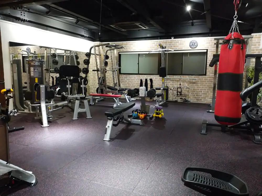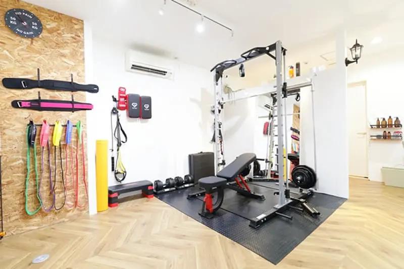スクワットやベンチプレスなどを行うための器具が一通りそろっています。サンドバッグも置いてあるので、ボクササイズを活用したトレーニングも行えます。