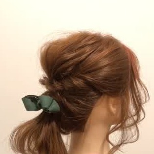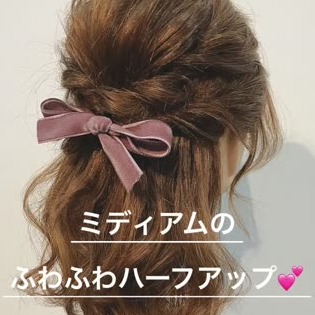 ねじりながらくるりんぱをするのがポイント。ゆるふわハーフアップなので、とっても上品な髪型に仕上がりになります!