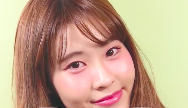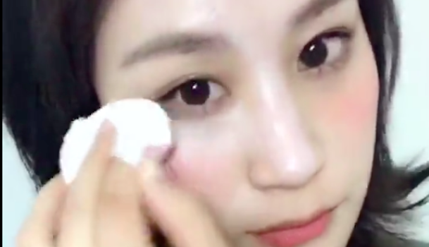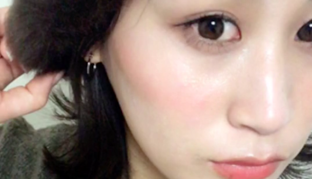 チークをのせていきます。下まぶたのピンクとチークをつなげるようにのせましょう。これで泣いた後のような目元に。