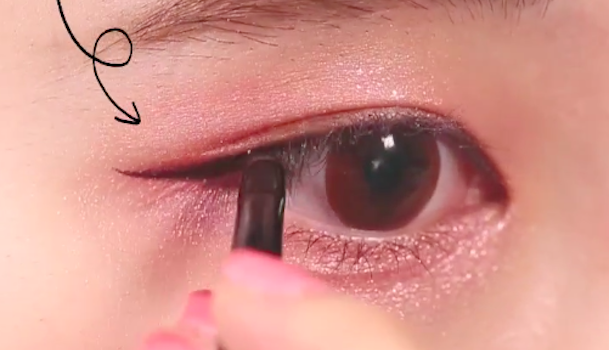 ジェルアイライナーでまつげの隙間をうめ、アイラインを引きます。少し長いぐらいがGOOD。