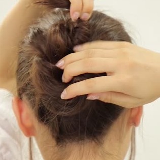 ピンで毛先をお団子の結び目にさし込むように固定します。