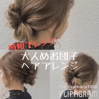 ボブさんでもアップヘアできますよ!上下に分けてお団子を作れば髪の毛がどんどん落ちてキチェう心配もなし。