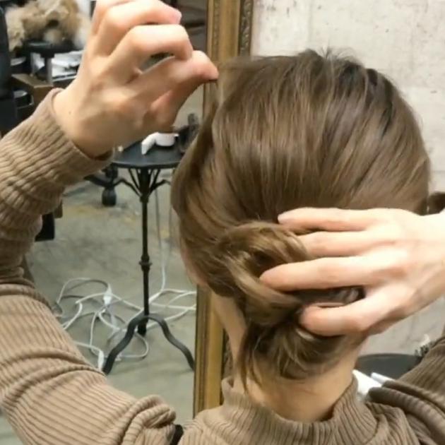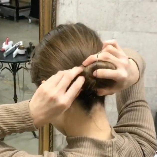 1分でできちゃう、忙しい朝でも上品にまとまるお団子ヘアです。トップをほぐすのがポイント!