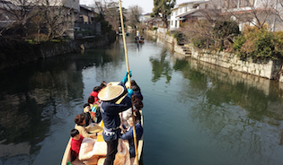 柳川川下りでは、船頭さんの説明や歌を聞いたり、川べりの人々やすれ違う船に乗っている人たちと話したりしながらゆっくりと市内をまわります。