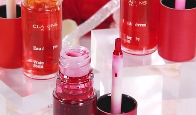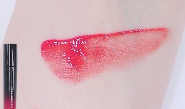 クラランスの「ウォーターリップステイン」も高発色の個性派リップ。水テクスチャーで塗ったことを忘れちゃうくらい軽い着け心地。リコリスとバニラの甘い香りにキュン♡