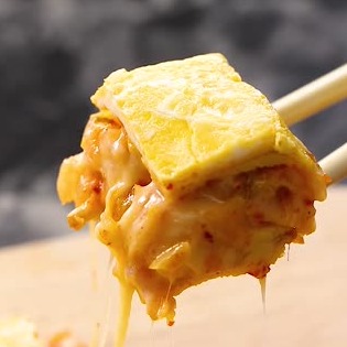 キムチとチーズは相性抜群!卵とチーズで、辛すぎないちょうど良い味わいになっています。