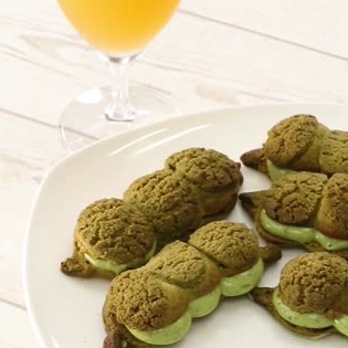 枝豆のようなフォルムをした、抹茶味のスイーツです。みんなで少しずつつまみたくなるはず!