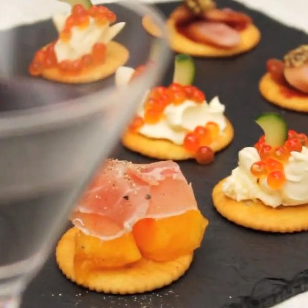 丸いクラッカーにカラフルな具材をのせるだけでとってもキュートに♡のせるだけなので、不器用さんも簡単につくれますよ。