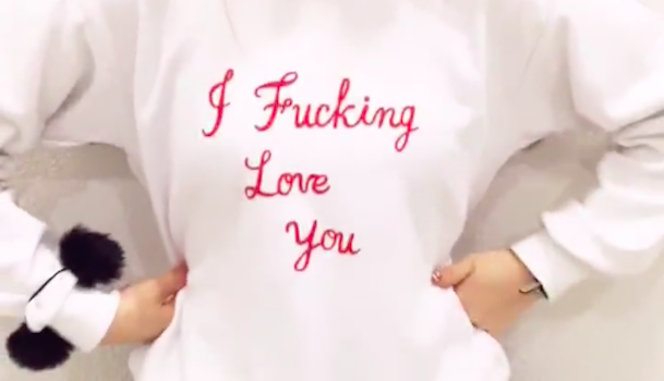 続いてトップスは白のロゴスウェット。ピンク色のロゴが入っているので女の子らしさがプラス♡