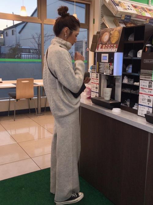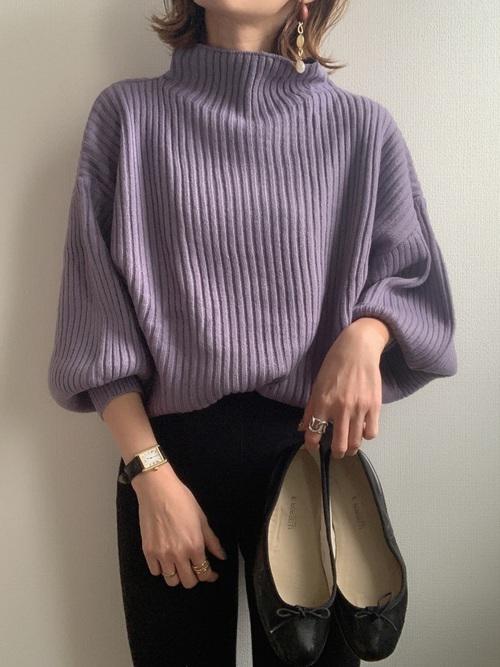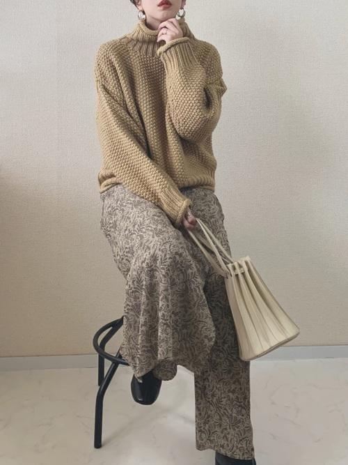 大きめのタートルネックニットは温かみもあって、かわいらしい印象に。デートのときにもピッタリですね♡