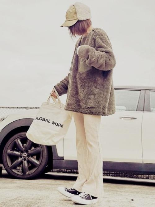 足元にボリュームを出すことでバランスの良いおしゃれスタイルに。