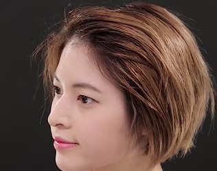 ここで、サイドの髪を前下がりにすることがおしゃれポイントですよ♪