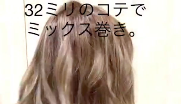 32mmのコテで全体的にミックス巻きをしてベースを作ります。この後アレンジするので、きれいに巻くというより全体的に巻くことを意識すると◎