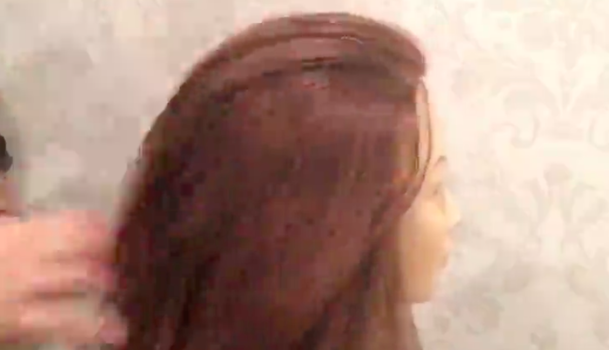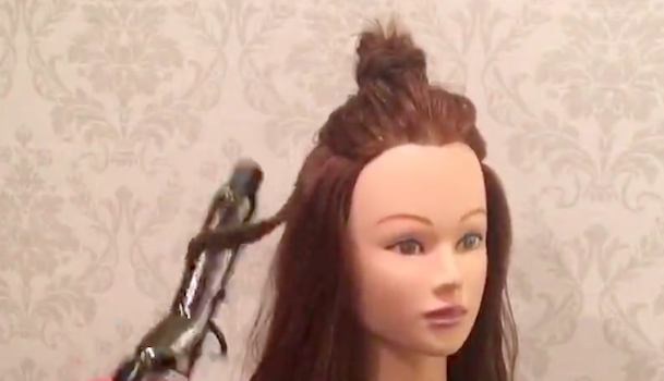 髪を全体的に19mmのコテでミックス巻きにしてベースを作ります。