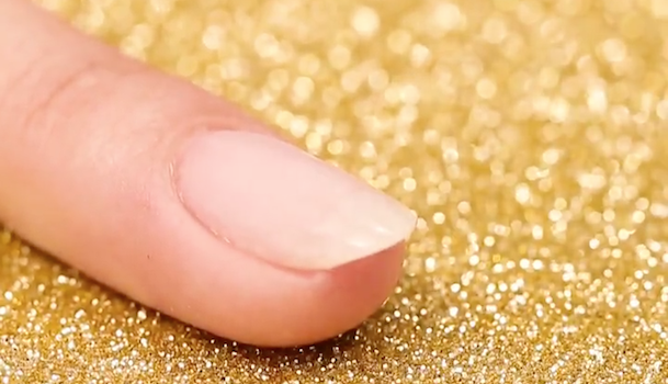 細い筆を使って爪をゴールドのラメで囲んでいきます。はみ出た部分は後から綿棒などを使って拭き取李ましょう。