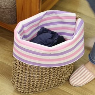 シーグラスマットをDIYすれば、そのまま服を入れられる洗濯物入れができちゃうんです!脱いだ服をそのまま入れられるのでとっても便利ですよ◎