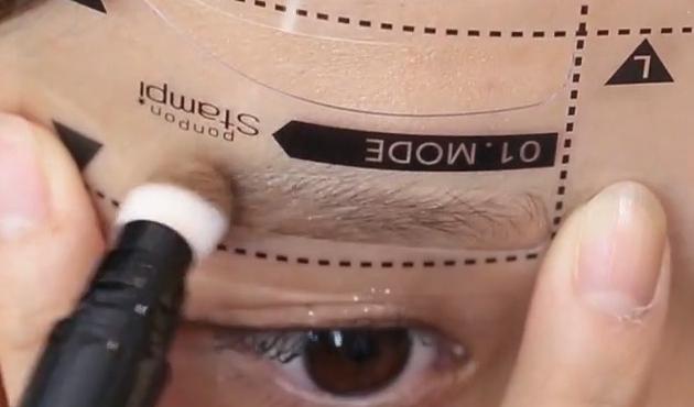 眉頭と眉山に力をいれてぎゅっとスタンプします。眉尻では力を抜いて軽くスタンプする感覚でOK。