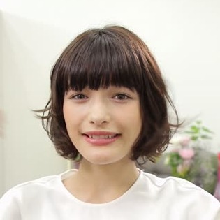 すっきりおでこ出しボブスタイルで、顔立ちをはっきりと見せましょう。