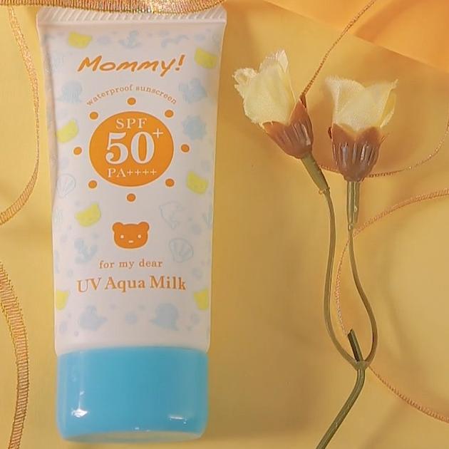 同じくマミーから、もっとUVカットをしたい方におすすめ。キシまずに潤って、白くなりにくい食品成分でつくらたミルクタイプの日焼け止めです。ウォータープルーフなので汗や水で落ちにくいですよ。