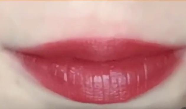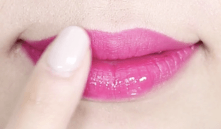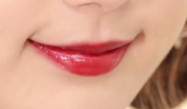 最後は指を口に入れ、さらに余分なリップを取ります。これで完璧♡