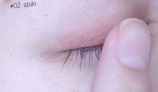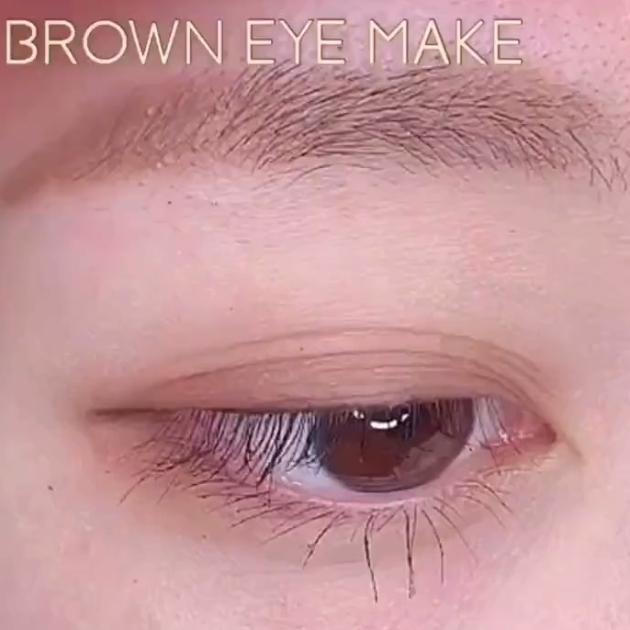 赤茶っぽいブラウンを二重幅に塗ってきます。ポイントは少し赤みのあるブラウンを選ぶこと♡