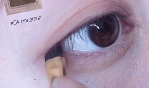 薄めで明るめのブラウンをアイホール全体に塗ります。