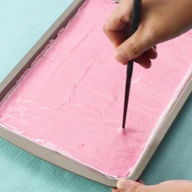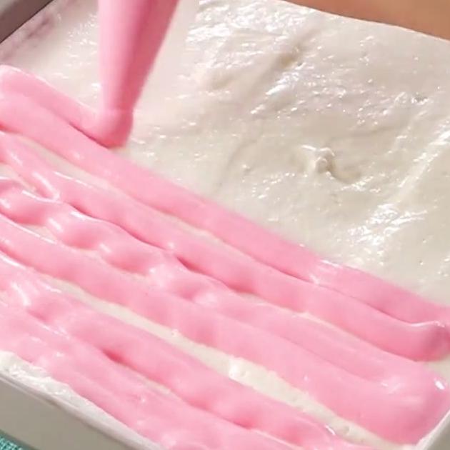 手順1でできた型の上から、食紅が入った生地を流し入れます。