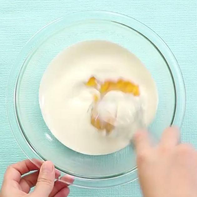 マンゴーをミキサーにかけてペースト状にしたものに、生クリーム、砂糖を加えて混ぜます。