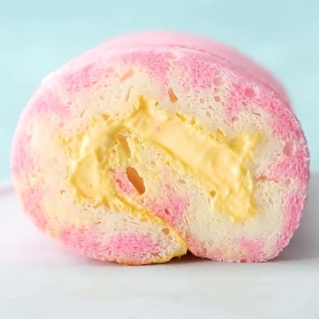 スポンジはピンク色、そしてなんと切ったとき、断面に模様が。色合いもとってもかわいい♡