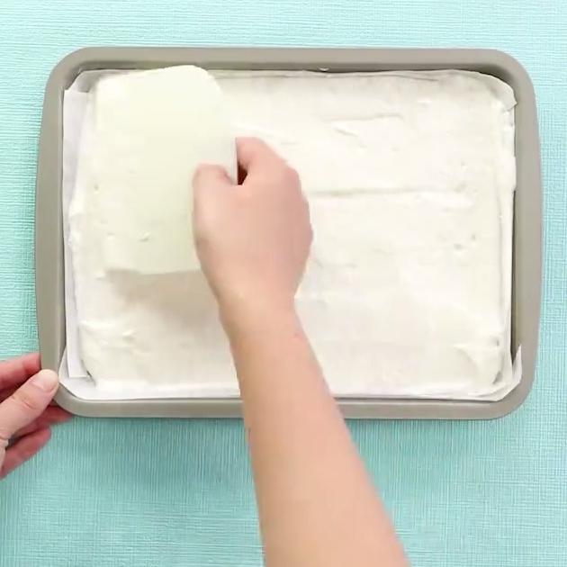 下準備で作ったプレーン生地を型に流して平らにならします。