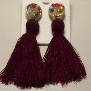 最近流行っているフリンジピアスもレジンで作れちゃうんです。こちらのボルドー色は秋ファッションにぴったりですよ♪