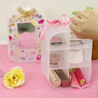 お姫様っぽい収納ケースはいつだって女の子の憧れ。コスメの収納にもってこいのレンジリメイクアイテムです♪