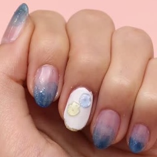 おゆまるとレジンを使えばネイルパーツだって簡単!今回は貝殻パーツで、夏らしいビーチ風ネイルに仕上がりました。