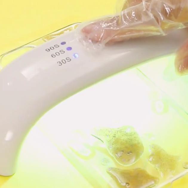 UVレジンは太陽光でも固まりますが、こちらのLEDライトを使えば短時間で硬化することができます。100円ショップでは購入できませんが、1つ持っていれば大活躍すること、まちがいなしですよ♪