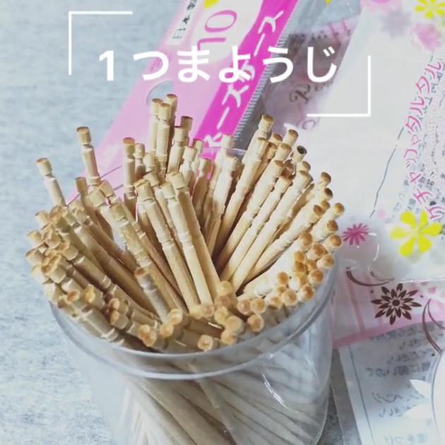 レジン液を流しいれるとき、気泡をつぶすとき、そしてパーツをレジンにのせるときなどに使います。つまようじは細かい作業にもってこい!