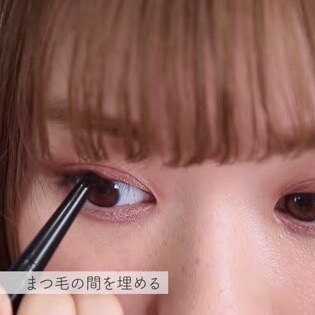 黒のアイライナーでまつげの間を埋めます。がっつり引かず、チョンチョンとまつげの隙間を埋めるだけでOK◎