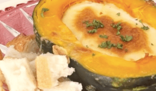 カボチャをまるごとつかった器の中に入ったチーズはインスタ映えバツグン!