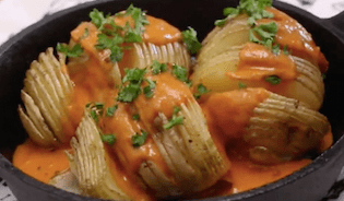 そのままでも美味しいハッセルバックポテトに、ピザ味のチーズをとろ~りかけました。