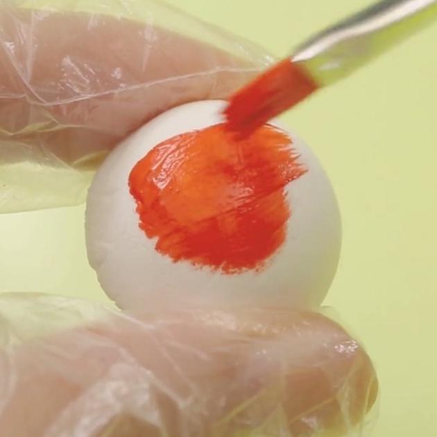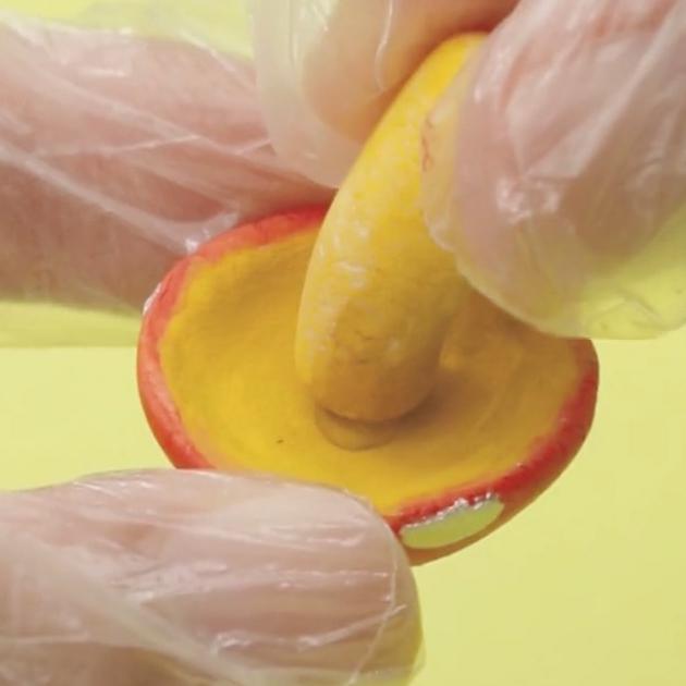 シリコンモールドにベビーオイルを1、2滴垂らしてすべりをよくしたあと、画像のように粘土をシリコンの中に入れて笠の形になるように型取ります。これで笠は完成!