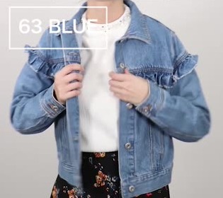 フリルがついているかわいいGジャン!今年流に着こなすなら肩を外して、ゆるっと着こなすのも◎