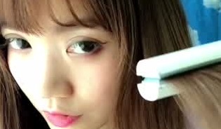 顔周りの髪の毛をとり、少しずつ波ウェーブを作っていきます。アイロンは横向きに入れ、上下に髪を巻いていきましょう♪