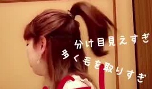 ランダムに巻いた髪の部分をハーフアップしていきます。この時に、髪を取りすぎないように気を付けてくださいね!ロブの長さは、髪を多く取りすぎてしまうとまとまった髪型になりません!髪の表目に上の束を結ぶと、分け目がくっきりと見えてしまいます。また、ぴょんぴょんして子供っぽくも見えてしまうので、気を付けてね♪