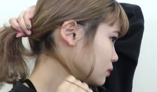 片手に持っていた髪の毛をお団子に結びます。ポニーテールを途中で輪っかのようにするだけでかわいいお団子が完成です♪
